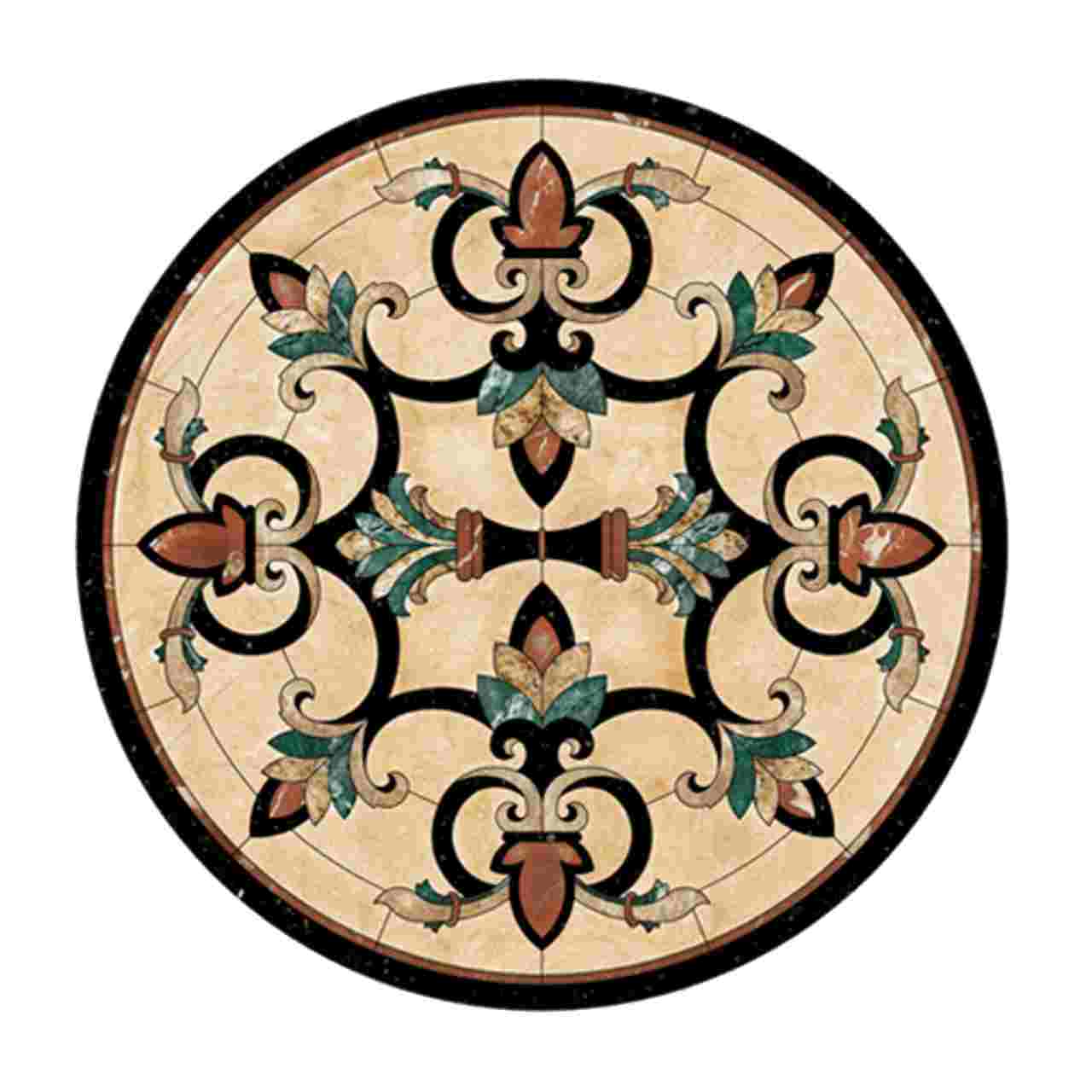 Design und Produktion von Steinmosaiken, Keramik in Medaillons (Kreise und Ellipsen), Rahmen, Tafeln und Verbundformen für die Lobby von Luxusgebäuden, Gewerbegebäuden, Hallen und Restaurants, Aufzug Fußböden, Treppenpodesten und Säulenfassaden in schönem Design und verschiedenen Maße mit Wasserstrahlschneidtechnik. Die Kunst, Metall wie Stahl, Bronze mit Stein zu mischen und wunderschöne Designs zu kreieren.